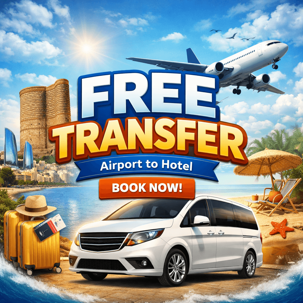 Book your hotel through our website and receive a Free One-Way Airport-to-Hotel Transfer. Start your journey in Baku with comfort and ease!